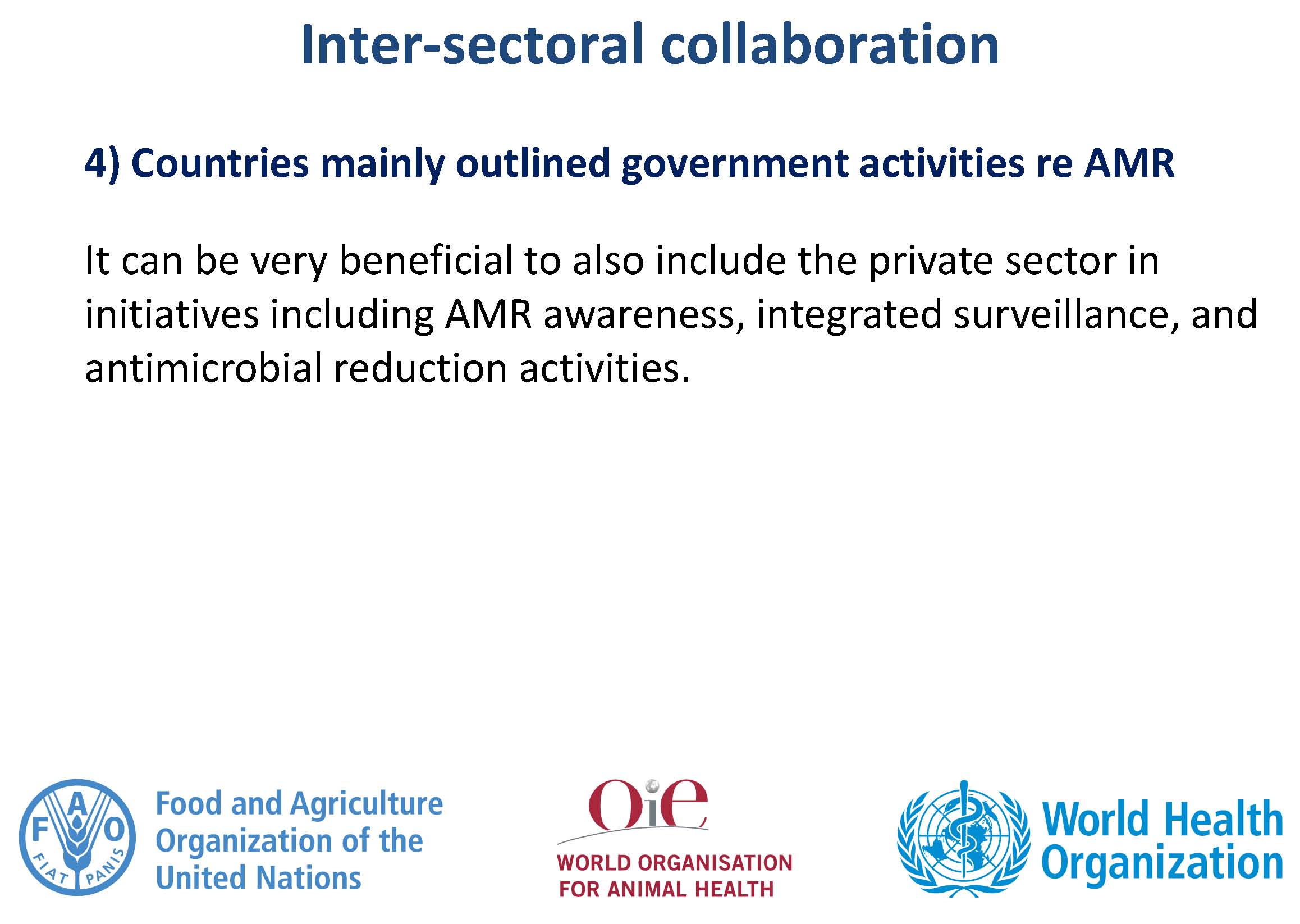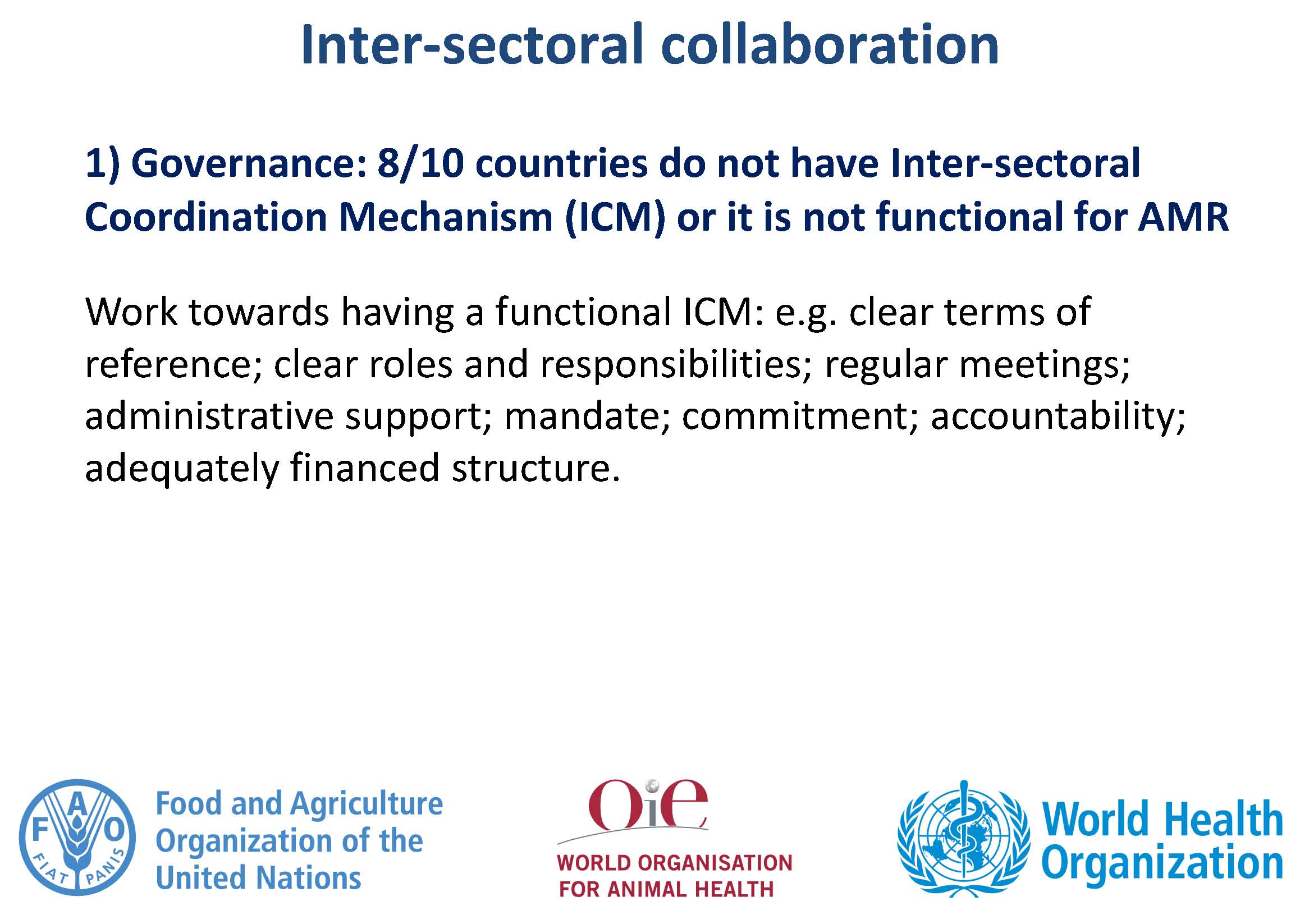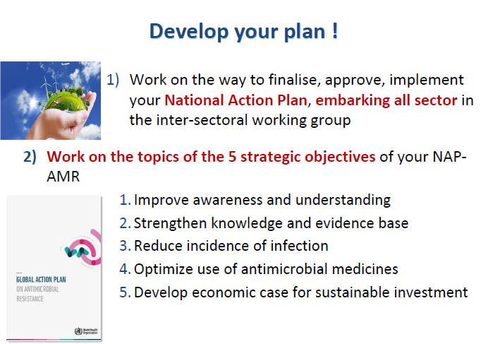 Increasing and broadening awareness and knowledge on AMR is required to engage national representatives of human, agriculture and animal health sectors, and to encourage behavioral change. Reforms are needed but require sustained financing of all activities outlined in the NAP.
