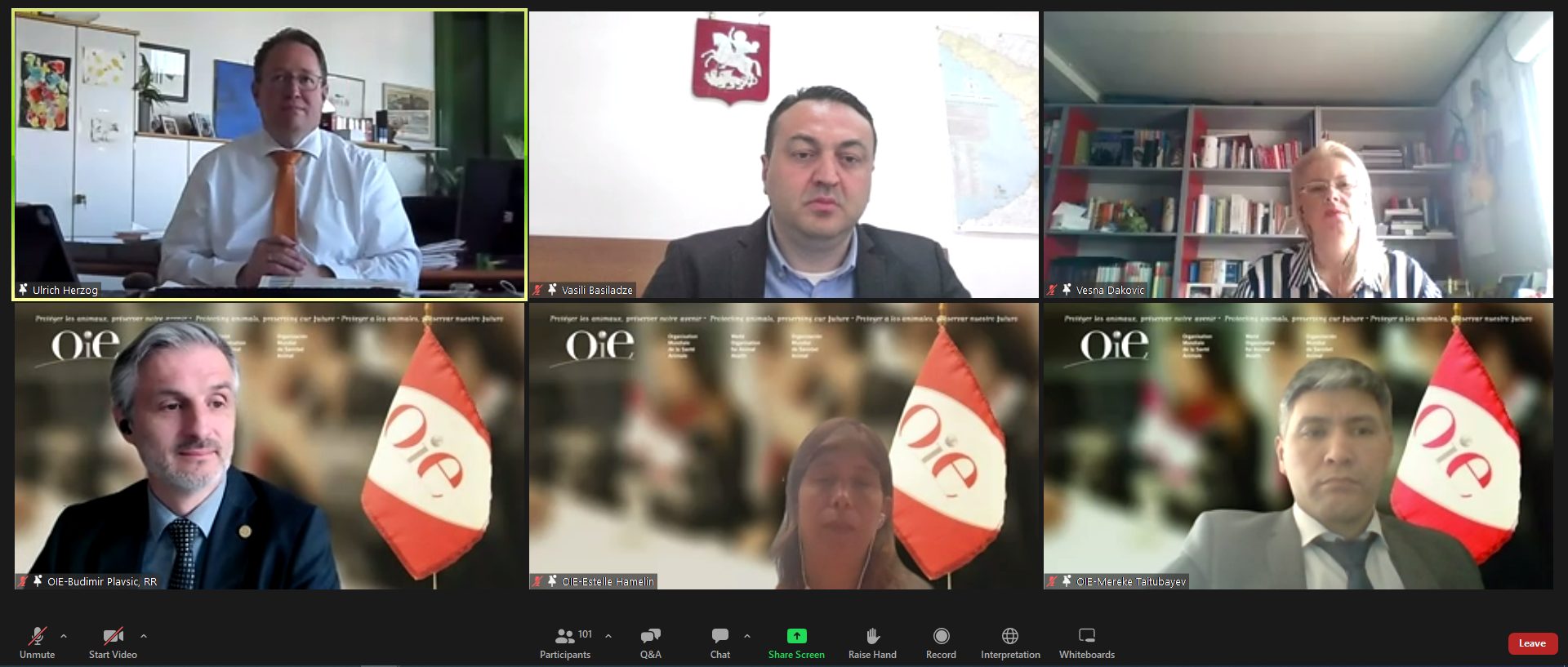 The OIE Regional Commission for Europe held an online meeting on May 18th, 2022, from 10:00 a.m. CEST. The meeting was attended by 104 participants, including Delegates and observers from 41 Member Countries from Europe, and representatives from 8 international or regional organisations. Dr Budimir Plavšić, OIE Regional Representative for Europe, welcomed the participants, announced that this meeting is starting the 89th General Session of the OIE and went through the rules of interaction during the webinar.