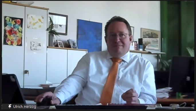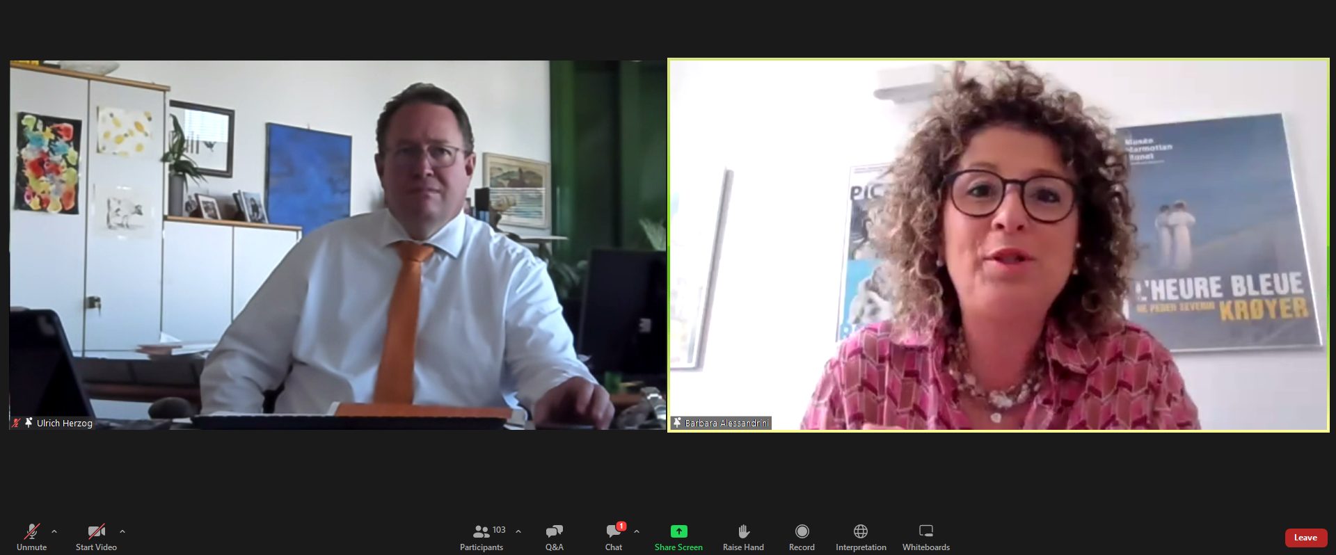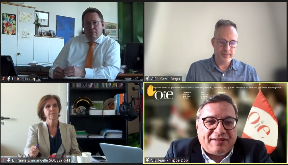 Dr Hans Kluge, WHO Regional Director for Europe highlighted the high level of cooperation with the OIE at regional level on the areas of common interest, including zoonoses and pandemic preparedness, and that Covid-19 reminded us that approximately 60% of human diseases originate from animals. He concluded that no one sector can successfully lead activities against disease, and that only coordinated multisectoral One Health approach will ensure balanced and optimised health of people, animals and ecosystem. OIE is a vital partner to WHO and our cooperation in Europe was improved greatly since the Quadripartite One Health Mechanism was created 13 months ago. Our common goal is to avoid emerging and re-emerging health threats. Building capacities in all sectors is essential to help countries manage threats in practice.