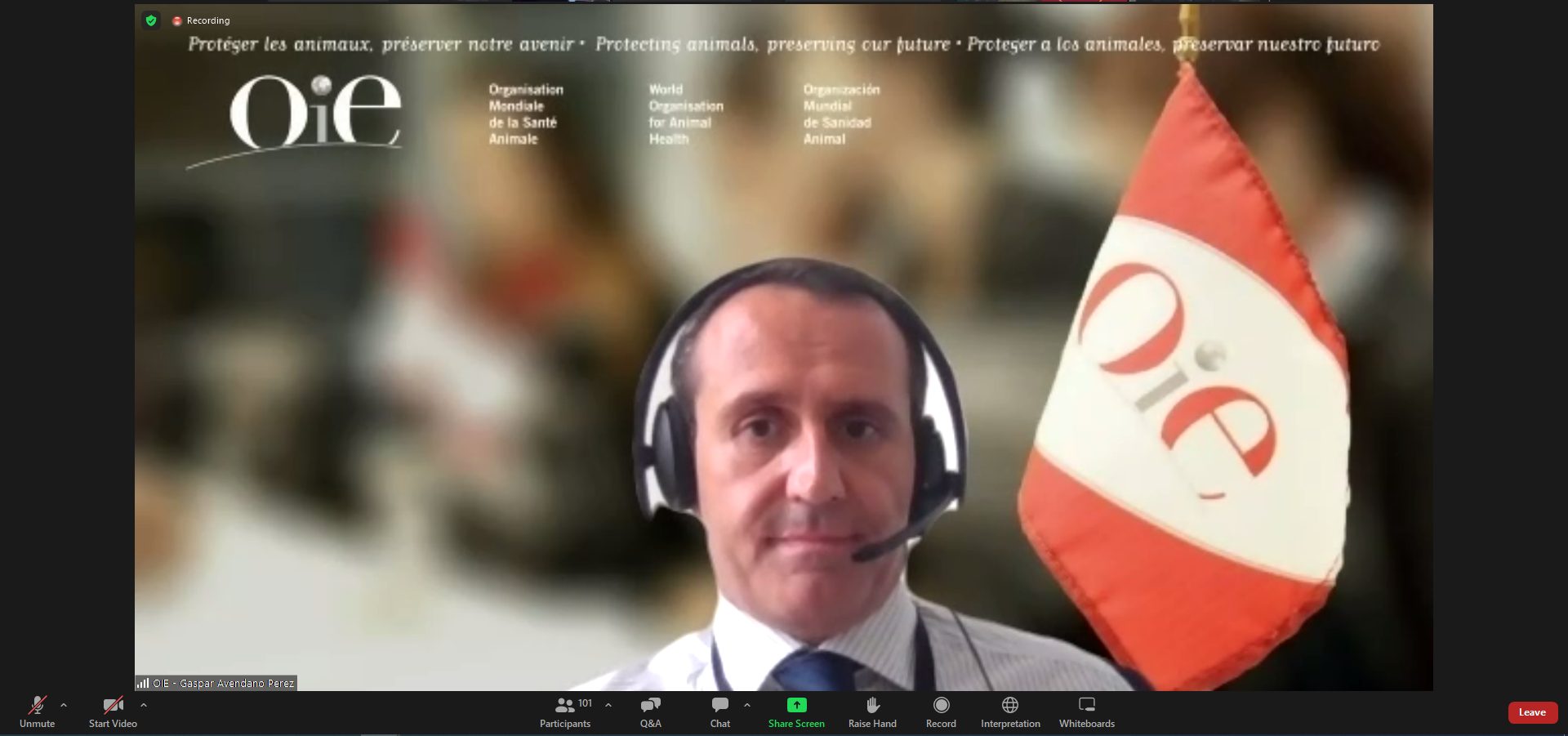 Mr Vladimir Rakhmanin, FAO Regional Representative for Europe and Central Asia, commended work done together with the OIE and WHO in the framework of the One Health Partnership, with the recent adjunction of UNEP colleagues. At regional level, the FAO will continue to work with the OIE and other colleagues in the framework of the Regional One Health Coordination Mechanism for Europe and Central Asia, established in April 2021. Last week, during FAO Regional Conference for Europe, Member States reaffirmed the importance of adopting and implementing the One Health approach, including the fight against antimicrobial resistance and zoonotic diseases through national action plans. Mr Rakhmanin also highly appreciated collaboration with OIE under umbrella of the Regional GF-TADs mechanism, with a very effective leadership of DG SANTE, where key diseases like ASF, Rabies, LSD, PPR, FMD and others are well coordinated for many years.