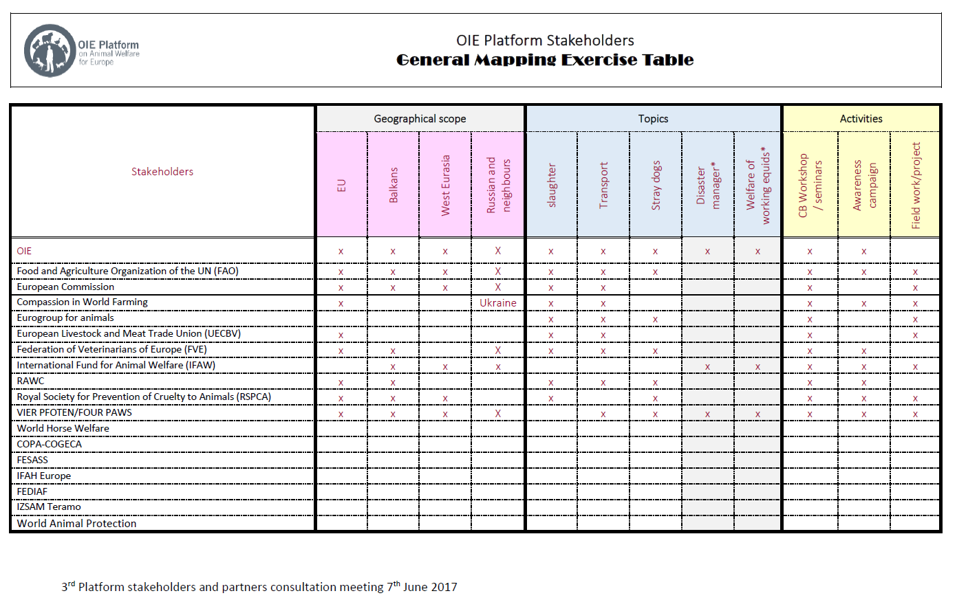 The OIE Platform has already built well established coordinating and dialogue mechanism to ensure that all countries and stakeholders involved in animal welfare in Europe share a common vision and conduct activities consistently towards achieving this vision.