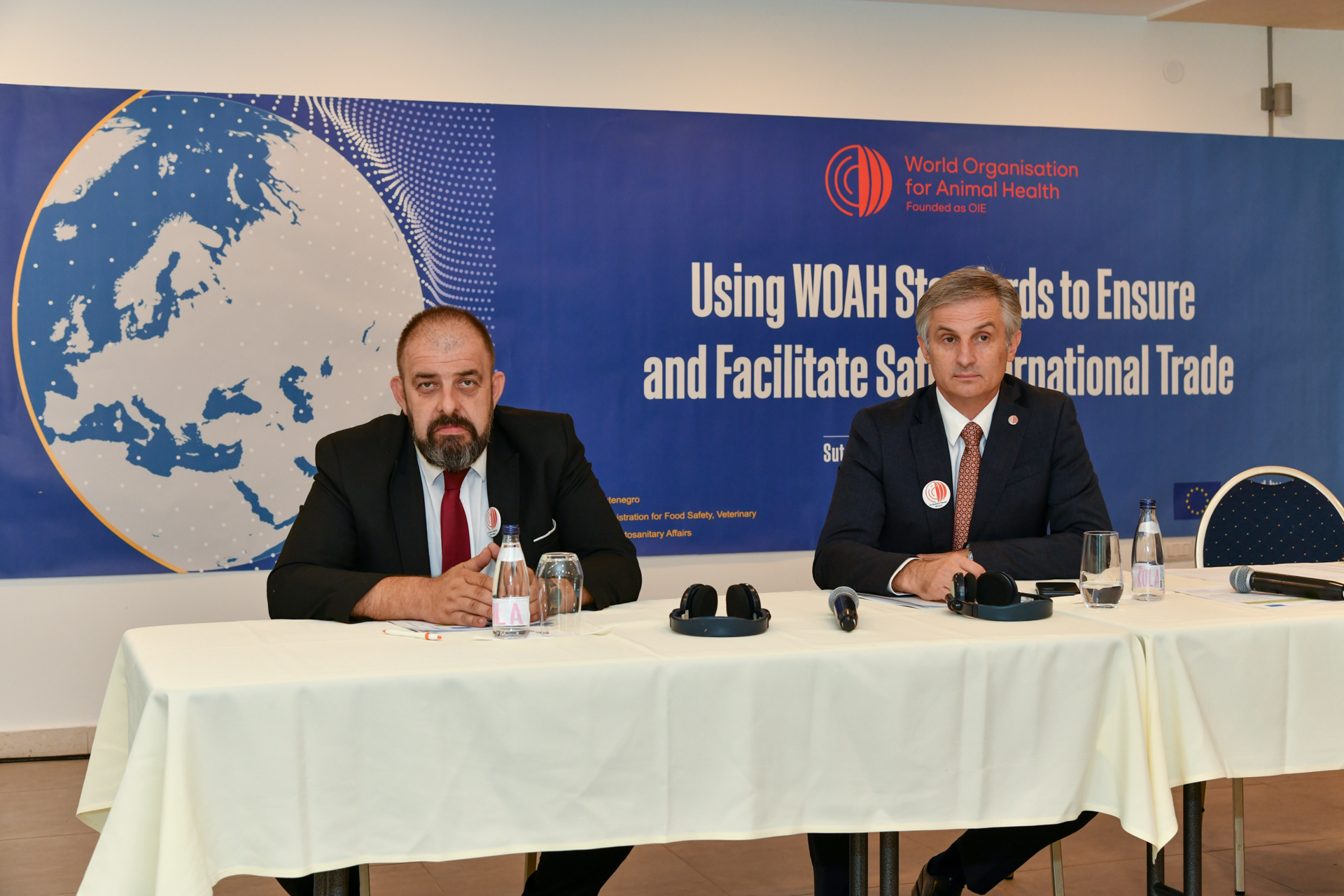 Dr Budimir Plavsic (WOAH Regional Representative), Dr Bernard Van Goethem – online (DG SANTE), and Mr. Vladimir Djakovic (WOAH Delegate and CVO of Montenegro), welcomed the participants and highlighted the importance of WOAH standards for Veterinary  Services to develop transparent and safe international trade.