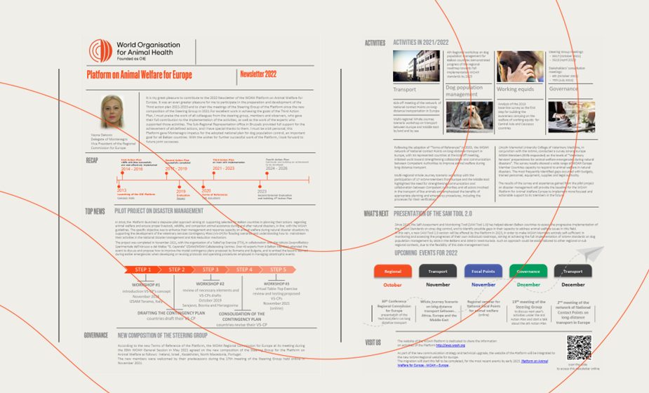 Our Platform on Animal Welfare for Europe was created in 2013, with a view to improving animal welfare all across Europe. It provides a sustainable collaboration mechanism for regional activities to support and empower Veterinary Services to take action and implement our standards on animal welfare. The Platform is governed by a Steering Group, under the supervision of the Regional Commission for Europe. The Secretariat of the Platform is ensured by the Sub-Regional representation in Brussels.