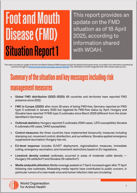 This report provides an update on the Foot and Mouth Disease (FMD) situation as of 18 April 2025, according to information shared with WOAH.