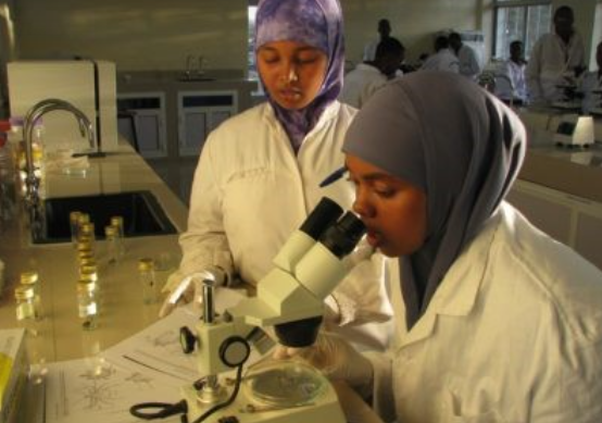 Two female veterinarians performing tick identification at the IGAD Sheikh Technical Veterinary School (ISTVS) diagnostic laboratory, Somalia. Picture © Mohamed Said Abdulle (winner of the OIE photo competition for Africa) 2018.
