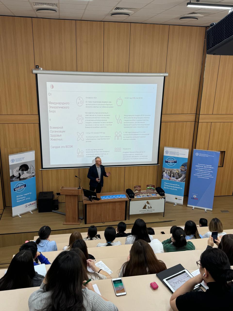 Key initiatives included visits to Astana Medical University and the Kazakh Agrotechnical Research University named after S. Seifullin, where lectures were delivered to students and faculty members. These sessions were accompanied by an engaging quiz, with small prizes awarded to participants who correctly answered the speakers’ questions.
