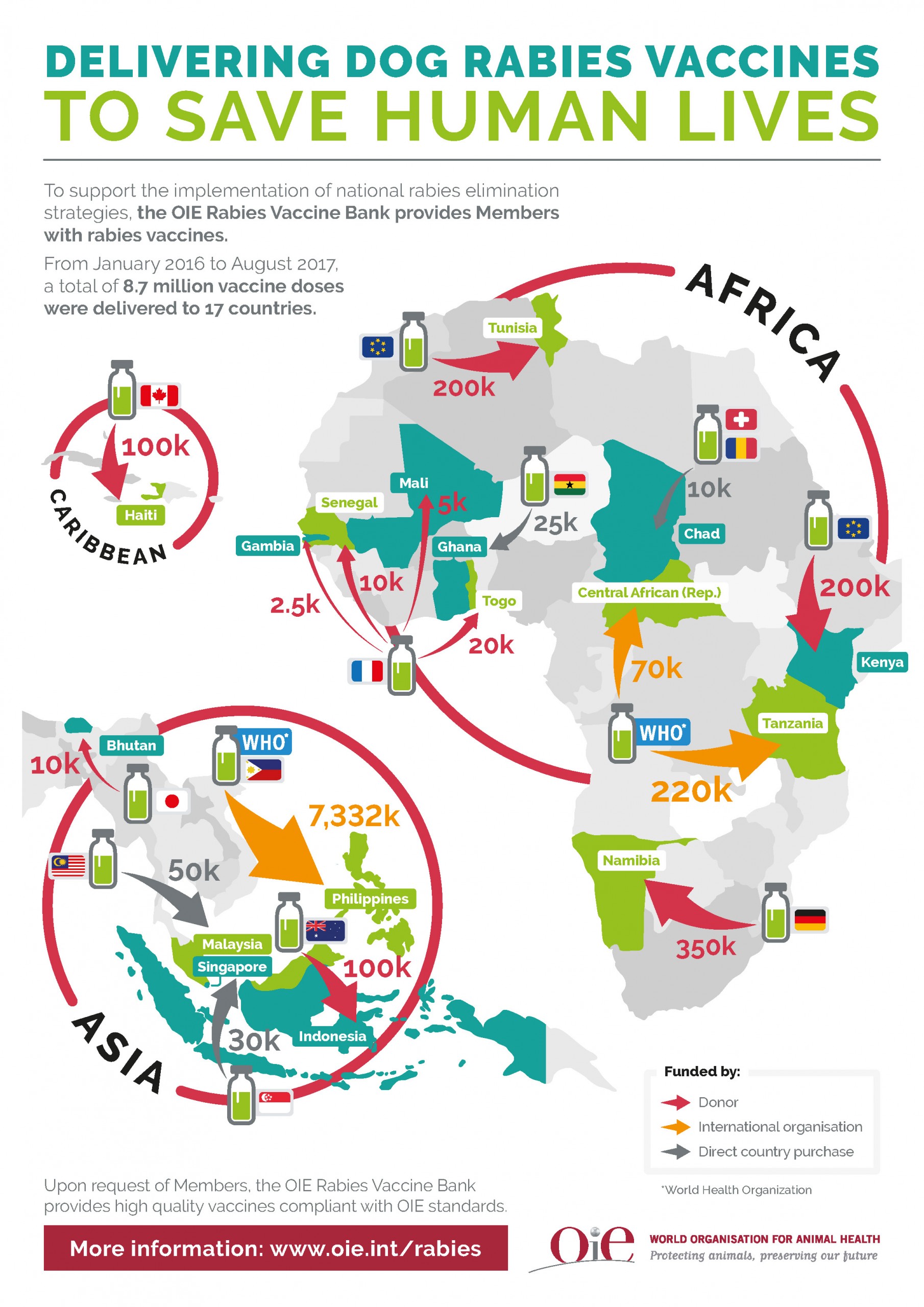Rabies, one of the 3 priorities of the Tripartite Alliance, remains an under-reported and neglected zoonosis, although still killing nearly 70,000 people every year worldwide, with its fatality rate of almost 100% in humans and animals. Dog-mediated human rabies causes tens of thousands of human deaths annually, despite being 100% preventable. Over 95% of human cases are caused by the bite of a rabies-infected dog, and disproportionately affect rural communities, particularly children, from economically disadvantaged areas of Africa and Asia, where awareness of the disease and access to appropriate post-exposure prophylaxis is limited or non-existent.