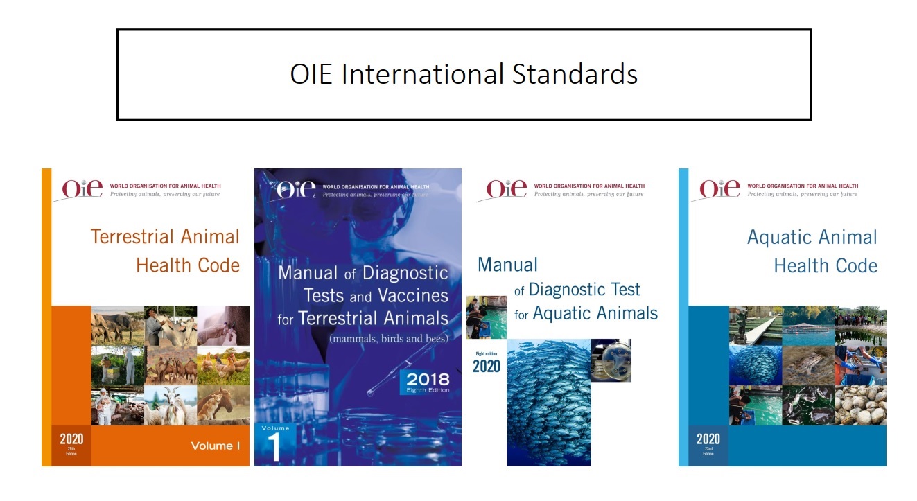 The WOAH is the WTO reference organisation for standards relating to animal health and zoonoses. We publish 2 codes (Terrestrial and Aquatic) and 2 manuals (Terrestrial and Aquatic) as the principal reference for WTO members.