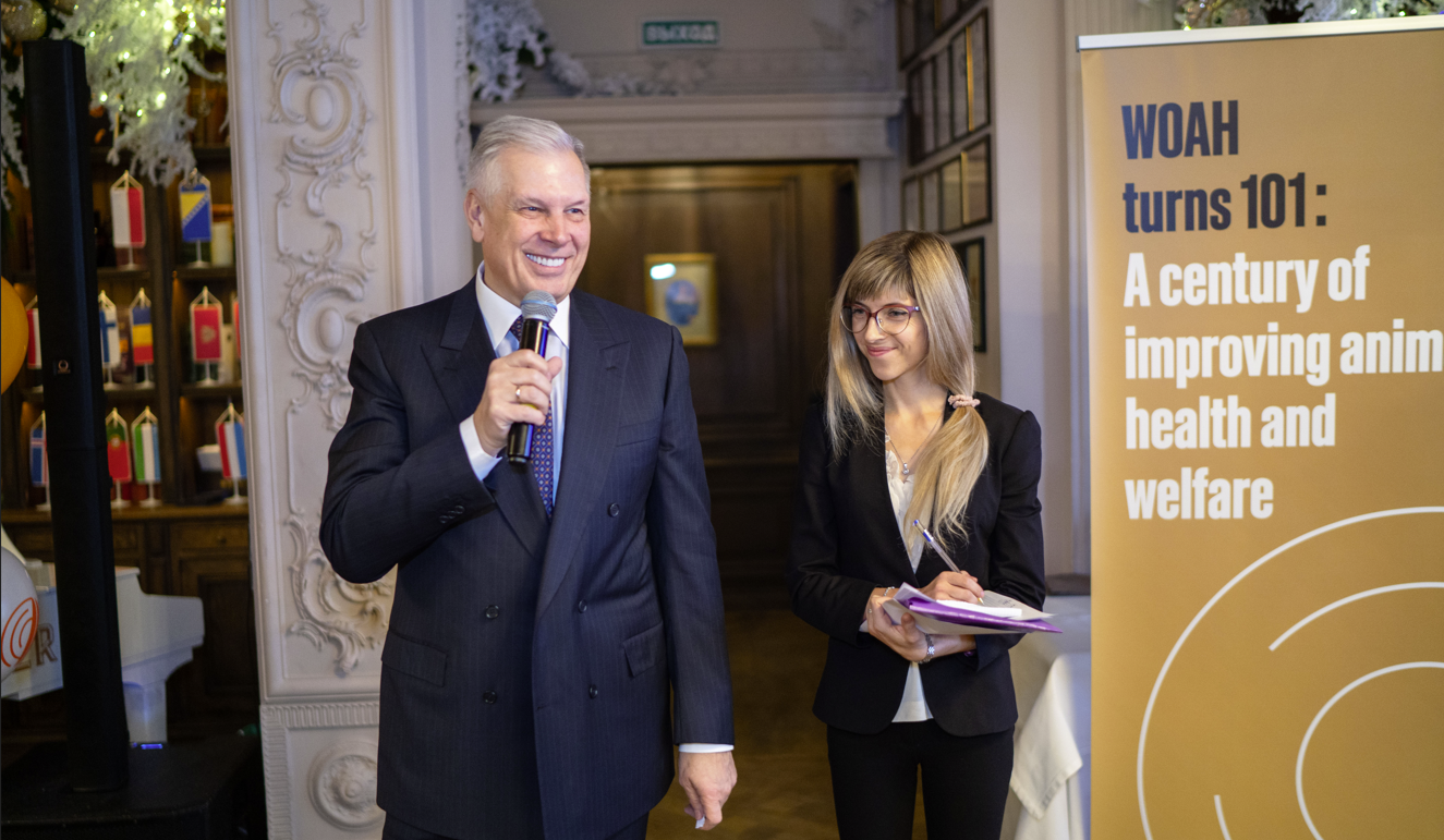 Всемирная организация здоровья животных (ВОЗЖ) недавно отметила 101-ю годовщину, и ее Региональное представительство по Европе в Москве организовало по этому поводу прием. 24 января 2025 года, в день рождения организации, на прием пришли ключевые заинтересованные лица из европейских стран-членов, включая послов и глав дипломатических миссий, высокопоставленных представителей российских ветеринарных служб и центров сотрудничества ВОЗЖ, Европейского союза, Евразийской экономической комиссии, партнерских агентств ООН (ФАО, ВОЗ и ЮНЕП).