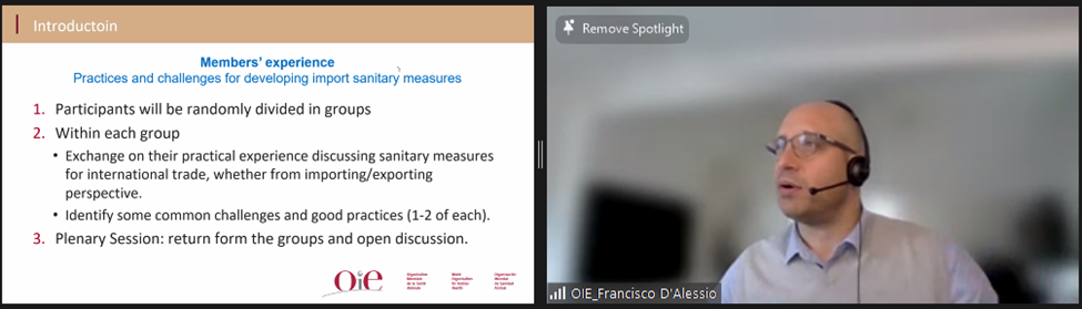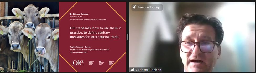 Всемирная организация здравоохранения животных (МЭБ), Департамент стандартов МЭБ, а также региональные и субрегиональные представительства МЭБ в Европе (Москва, Нур-Султан и Брюссель) провели две виртуальные сессии регионального обучающего вебинара «Стандарты МЭБ: Содействие безопасной международной торговле» для делегатов МЭБ из 53 стран-членов европейского региона и должностных лиц, занимающихся оценкой рисков, связанных импортом или экспортом животных и продуктов животного происхождения. В вебинаре зарегистрировалось более 100 участников.