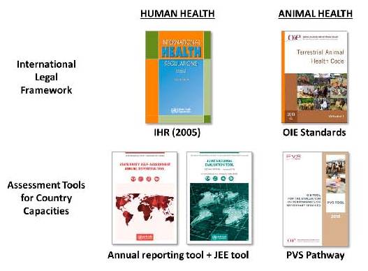 ВОЗ и МЭБ считают, что на страновом уровне совместное использование системы мониторинга и оценки ММСП, разработанного ВОЗ, и Пути ПВС МЭБ, приведет к большей согласованности подхода и стратегий по наращиванию потенциала между секторами общественного здравоохранения и ветеринарии. Используя сравнительные преимущества, они совместно определили оперативный подход для предложения мероприятий по наращиванию потенциала для укрепления взаимодействия между профессионалами и политическими деятелями обоих секторов.