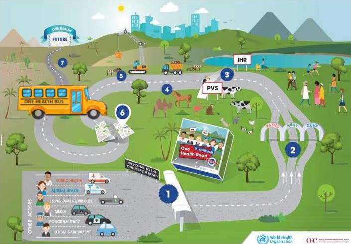 В целях укрепления потенциала стран для решения приоритетных инфекционных заболеваний, включая зоонозы, и для обеспечения взаимодействия между системами общественного здравоохранения и ветеринарии. Всемирная организация здравоохранения (ВОЗ) и МЭБ совместно разработали подход к проведению национальных семинаров для поощрения и содействия подходу «Единое здоровье» к лечению животных и зоонозных инфекционных заболеваний.